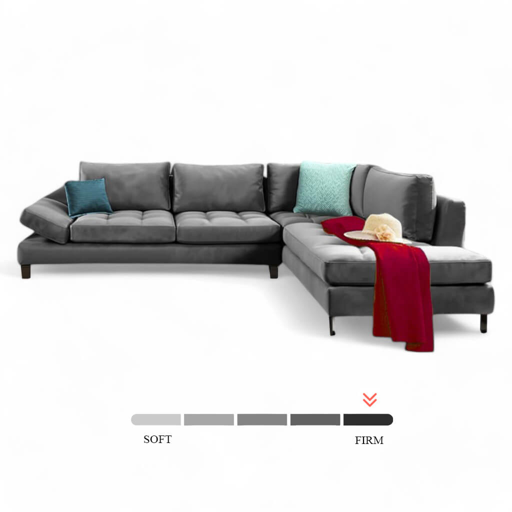 Με μήκος 3 μέτρα και γωνία 2,35 μέτρων, ο Εστέλλα προσφέρει άπλετο χώρο για ταινίες, παιχνίδι ή φιλοξενία. Το βάθος καθίσματος των 56 εκατοστών είναι ιδανικά ισορροπημένο: αρκετά βαθύ για να χαλαρώνετε, αλλά και σωστό για να κάθεστε άνετα όταν έχετε παρέα και συζητάτε.