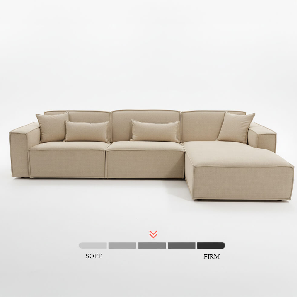 Προσαρμοστικός Σχεδιασμός: Μετατρέπεται εύκολα από μεγάλο γωνιακό καναπέ (335cm) σε ένα μικρότερο σετ διθέσιου καναπέ και πολυθρόνας.