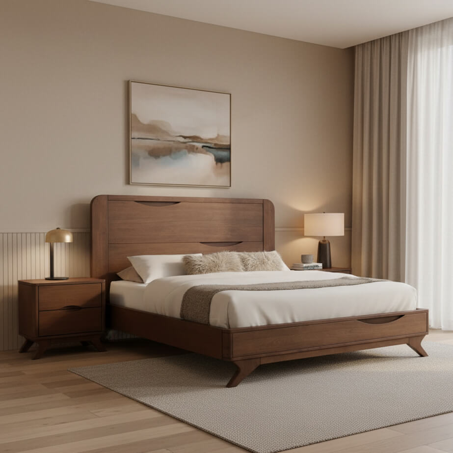 Υπάρχει μια γοητεία στο design που αντέχει στον χρόνο. Μια αισθητική που είναι ταυτόχρονα νοσταλγική και απόλυτα σύγχρονη. Αυτή είναι η ψυχή του ξύλινου κρεβατιού "Σεσίλια", ενός κομματιού που φέρνει τη ζεστασιά, τις καθαρές γραμμές και την αυθεντική κομψότητα του Mid-Century Modern design στο σήμερα.