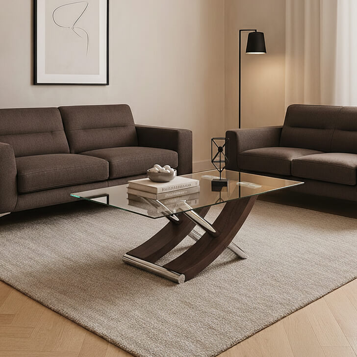 Design Τραπεζάκι Σαλονιού | Γυαλί, Ατσάλι & Όψη Ξύλου