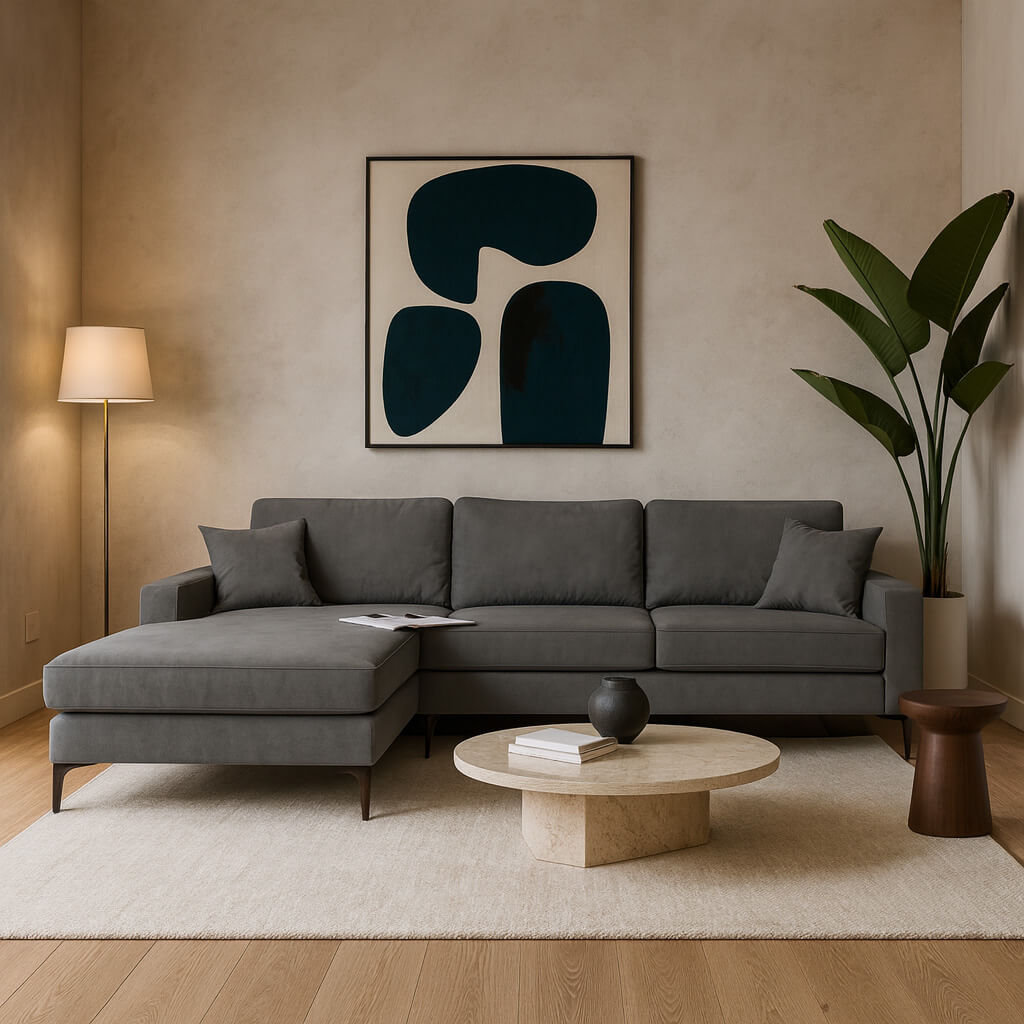 The modern Star corner sofa upgrades any living room. This sofa is upholstered in durable and waterproof velvet that is pleasing to the eye and adds an attractive look to your space. Available in earthy soft colours, it offers a sense of sophistication and is the perfect choice for a modern yet classy atmosphere.