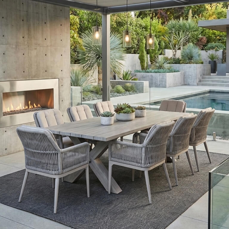 Upgrade your outdoor space with the stunning Hawaiian Outdoor dining set . This aluminum garden dining table with chairs is the ideal choice for those who wish to combine comfort with quality in their outdoor space.