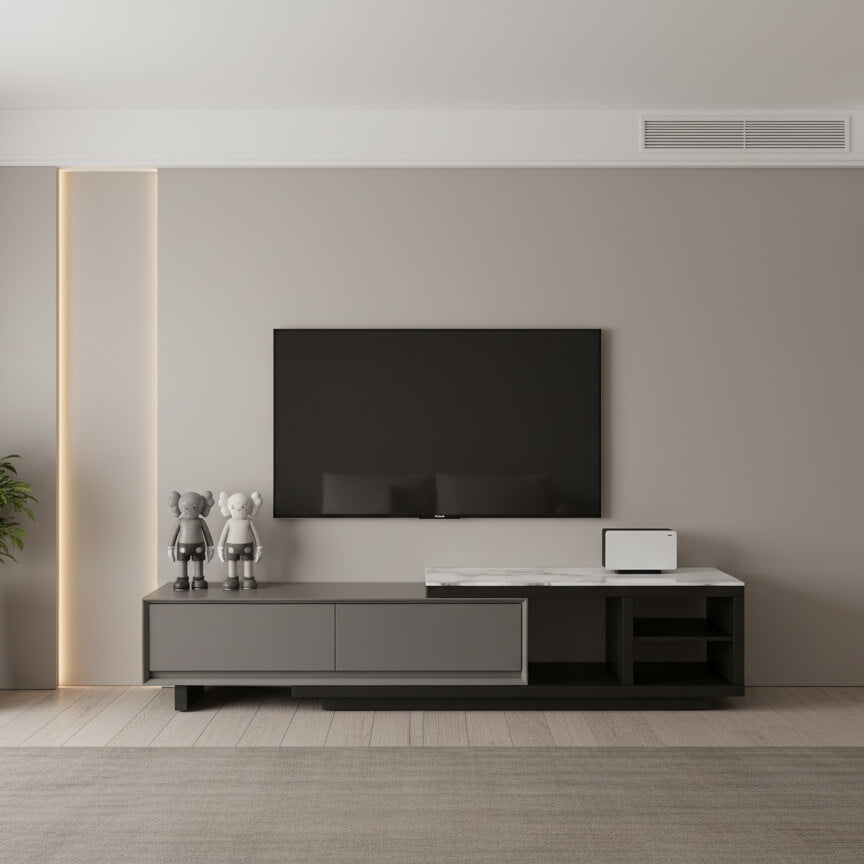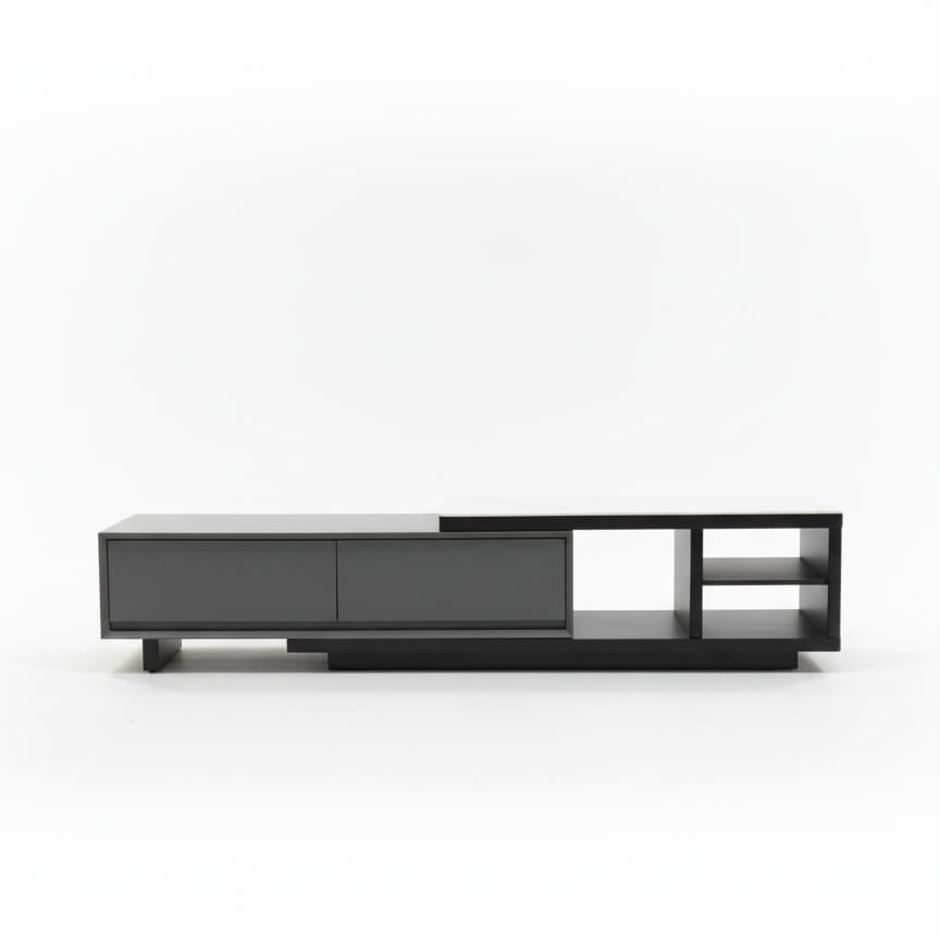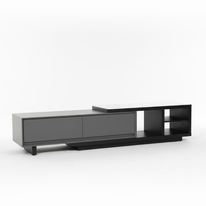 The Alexa extendable TV Stand offers modern aesthetics and smart flexibility for your living room. Its innovative design allows expansion from 158 cm. in 218 cm. , thanks to the sliding section that includes the drawers. This feature gives you the freedom to customize the stand to fit your space, while also adding functionality.