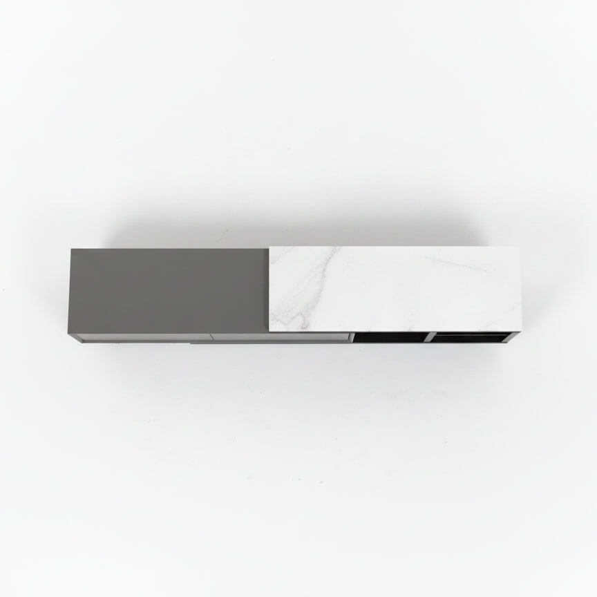 Alexa is made of MDF pine wood and covered with durable artificial stone (Sintered Stone) , ensuring long-term durability and a modern look. The 2 drawers and shelves offer plenty of storage space, ideal for organized storage of electronic devices, books or decorative items.