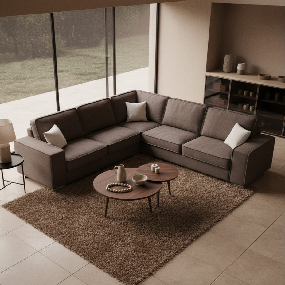 The modern corner sofa Fandy combines comfort with appearance, accentuating your space with a special touch of elegance. With dimensions of 300 x 300 x 97 x 72 cm, it offers comfort and style for any living room. The linen fabric adds a sense of sophistication and ease of maintenance, while the brown and gray colors fit perfectly into any decor.