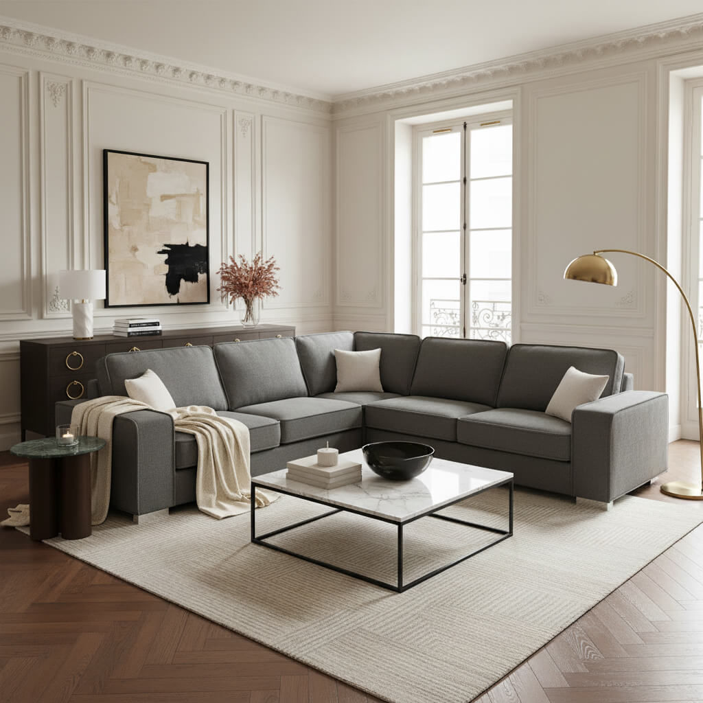The modern Fandy corner sofa is a sophisticated choice that adapts perfectly to the requirements of the modern living room, offering comfort and functionality without compromising on aesthetics.