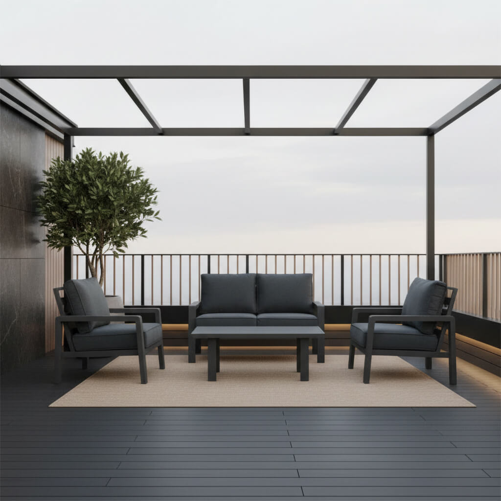 Απολαύστε την άνεση και την κομψότητα που προσφέρει το σετ εξωτερικού χώρου Κρήτη απο αλουμίνιο, και δημιουργήστε τον τέλειο χώρο για να χαλαρώσετε και να διασκεδάσετε με τους φίλους και την οικογένειά σας.