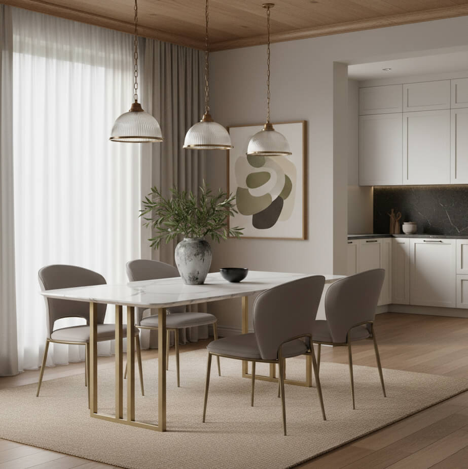 Красивая современная стул для вашей кухни или столовой, в минималистичном дизайне, нежно-бежевого цвета с золотыми деталями